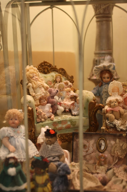My curio cabinet, where I keep small dolls and miniatures I have made.